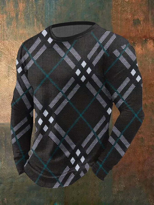 Men's Vintage Textured Waffle Long Sleeve T-Shirt