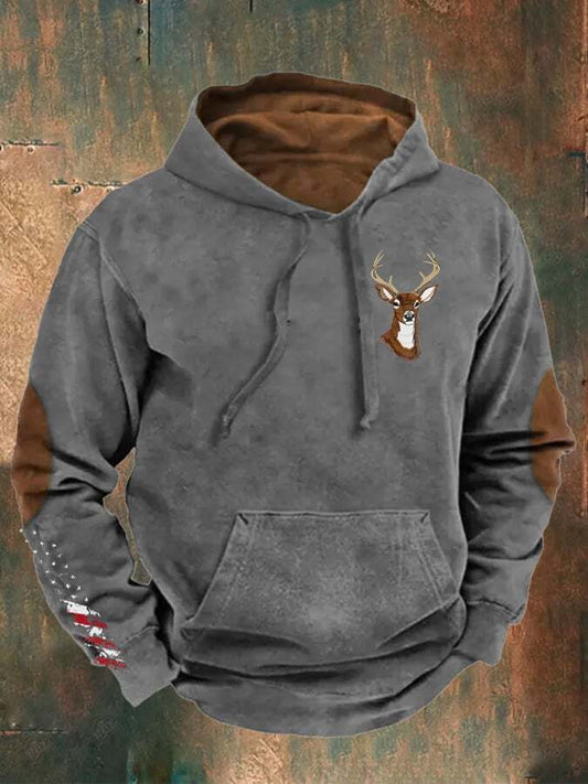 Men's Vintage Color-Brushed Western Elk Print Hoodie