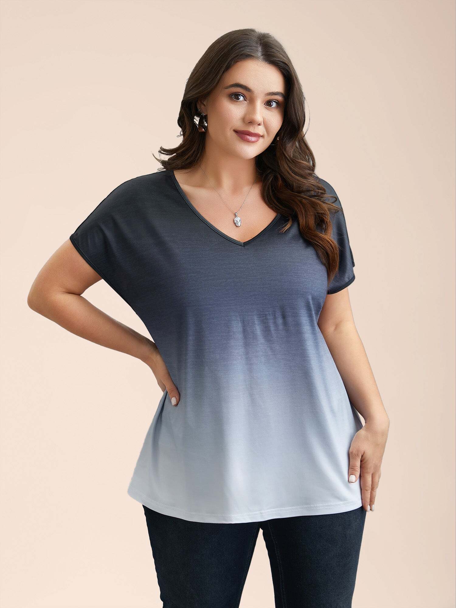 Gradient Tie-Dye Stretchy V-Neck T-Shirt