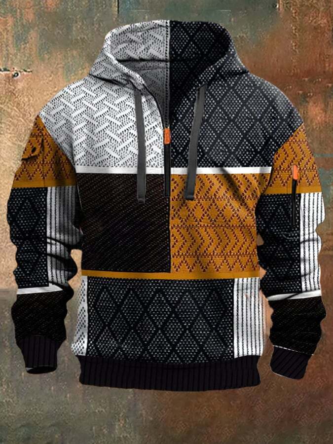 Men's Retro Western Colorblock Textured Print Multi-Pocket Jacket