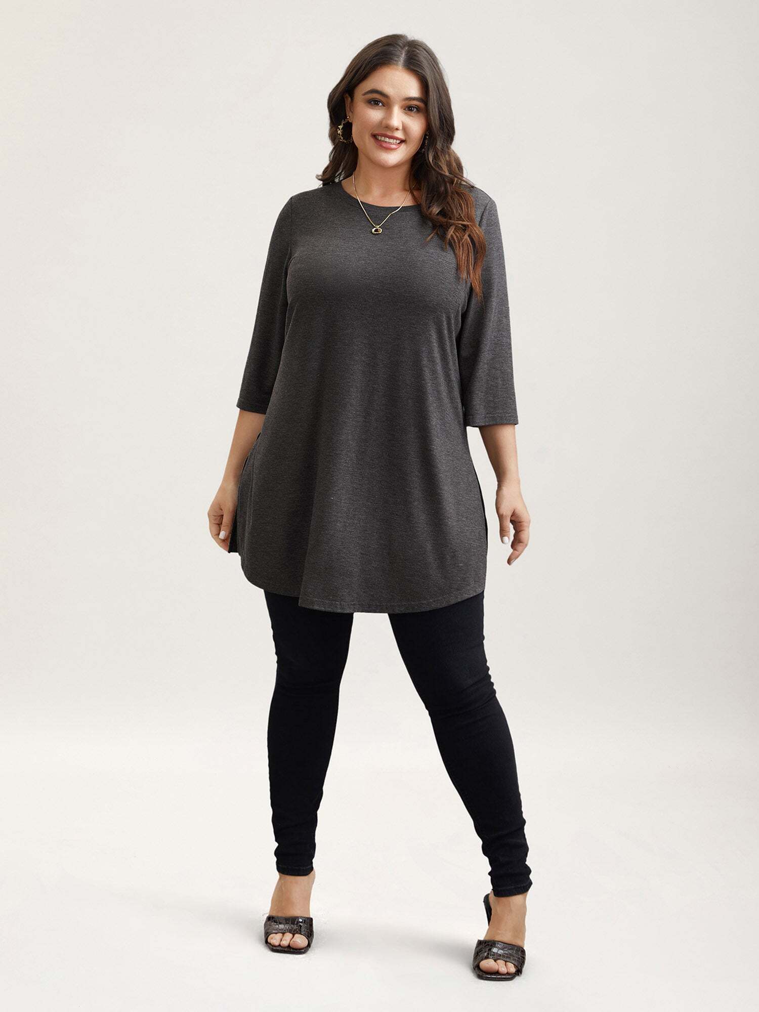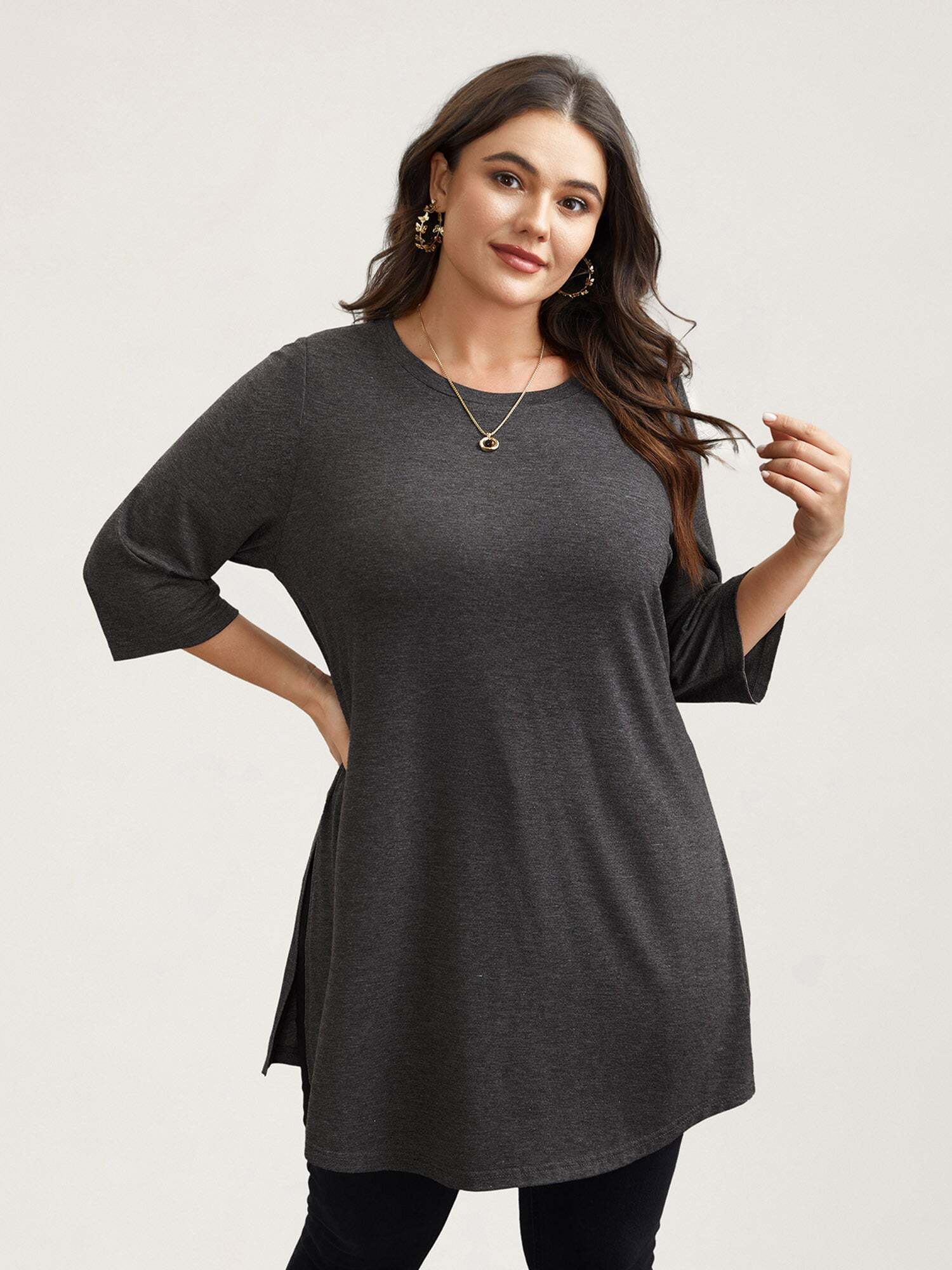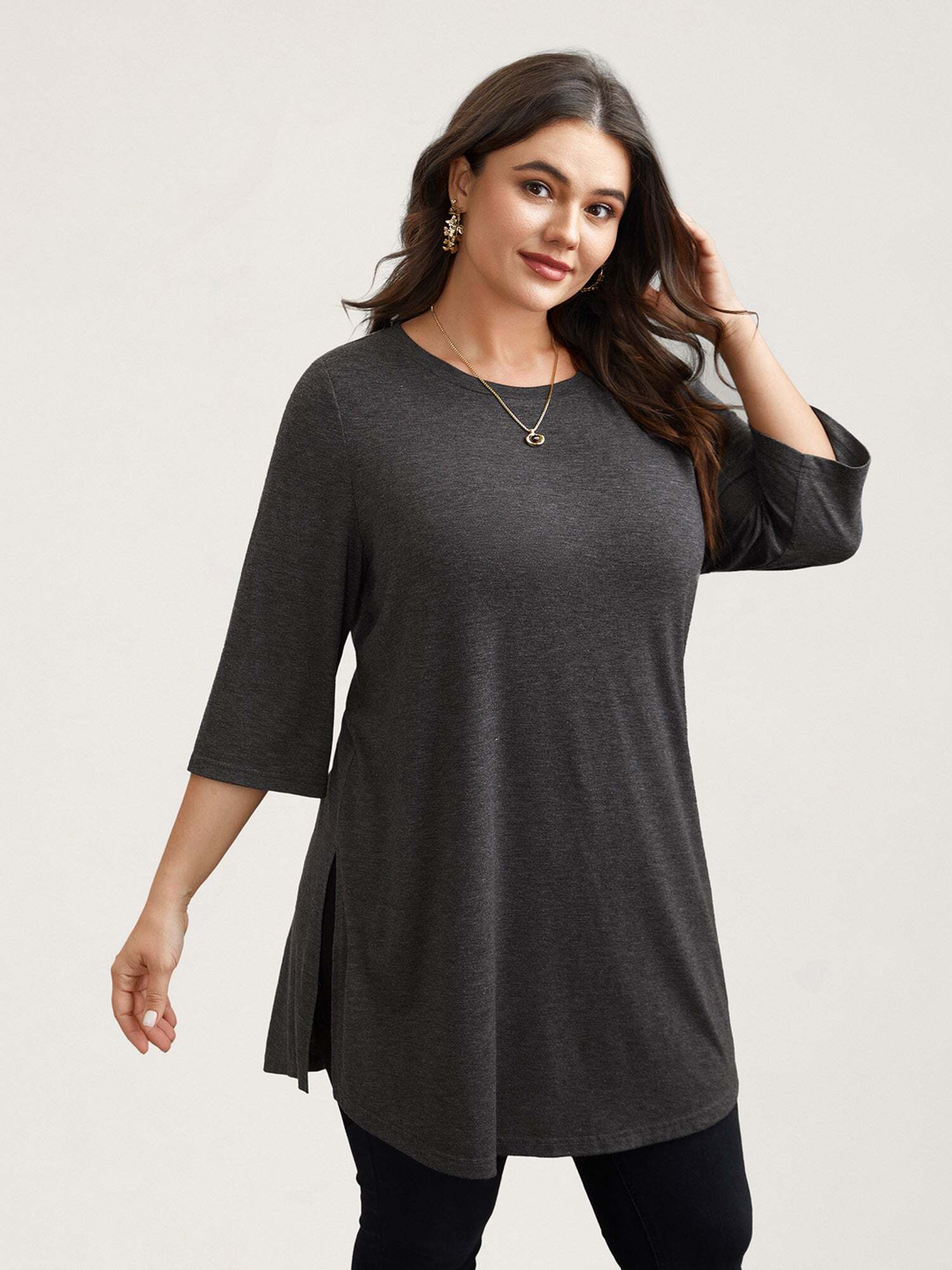 Solid Slit Round Neck Tunic T-Shirt