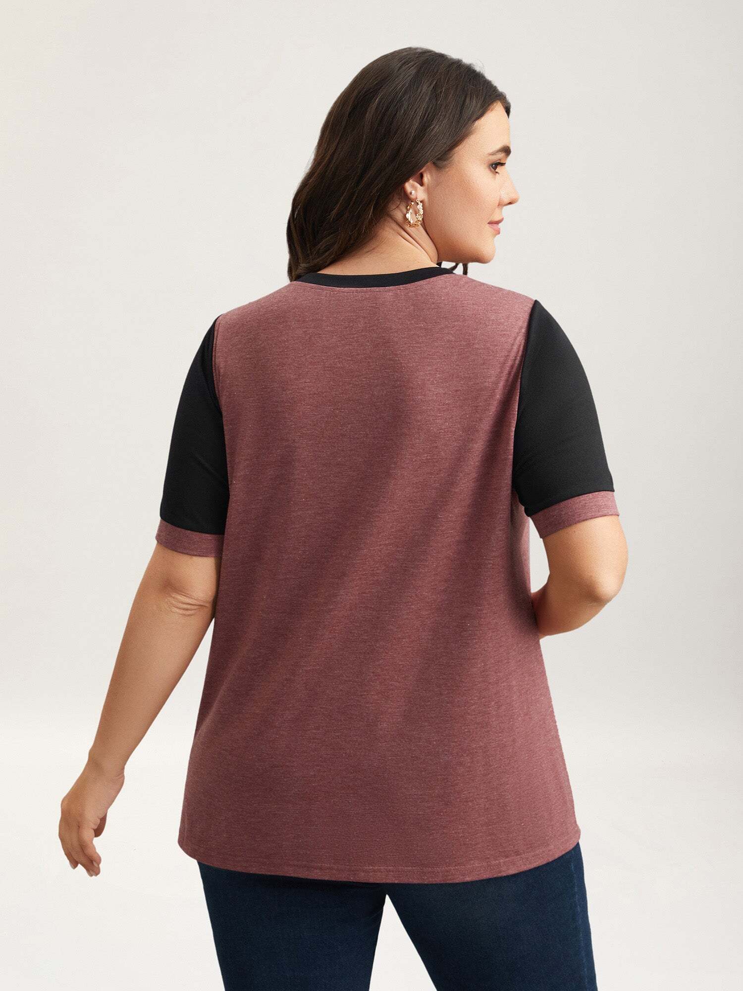 Stretchy Scalloped Lace Color Contrast T-Shirt